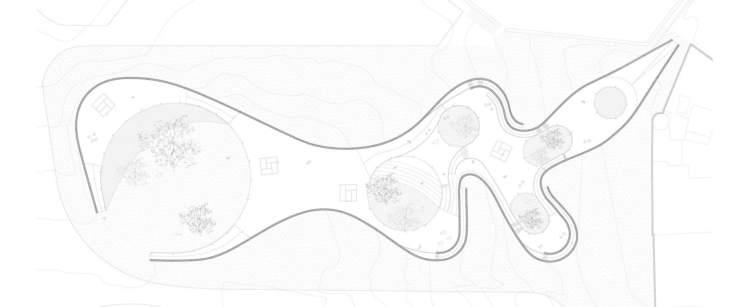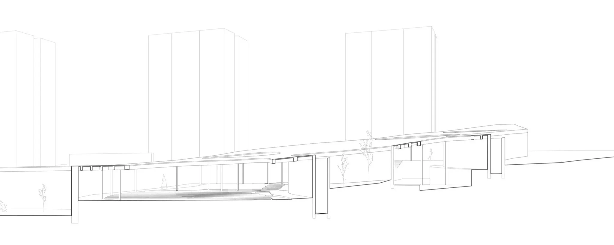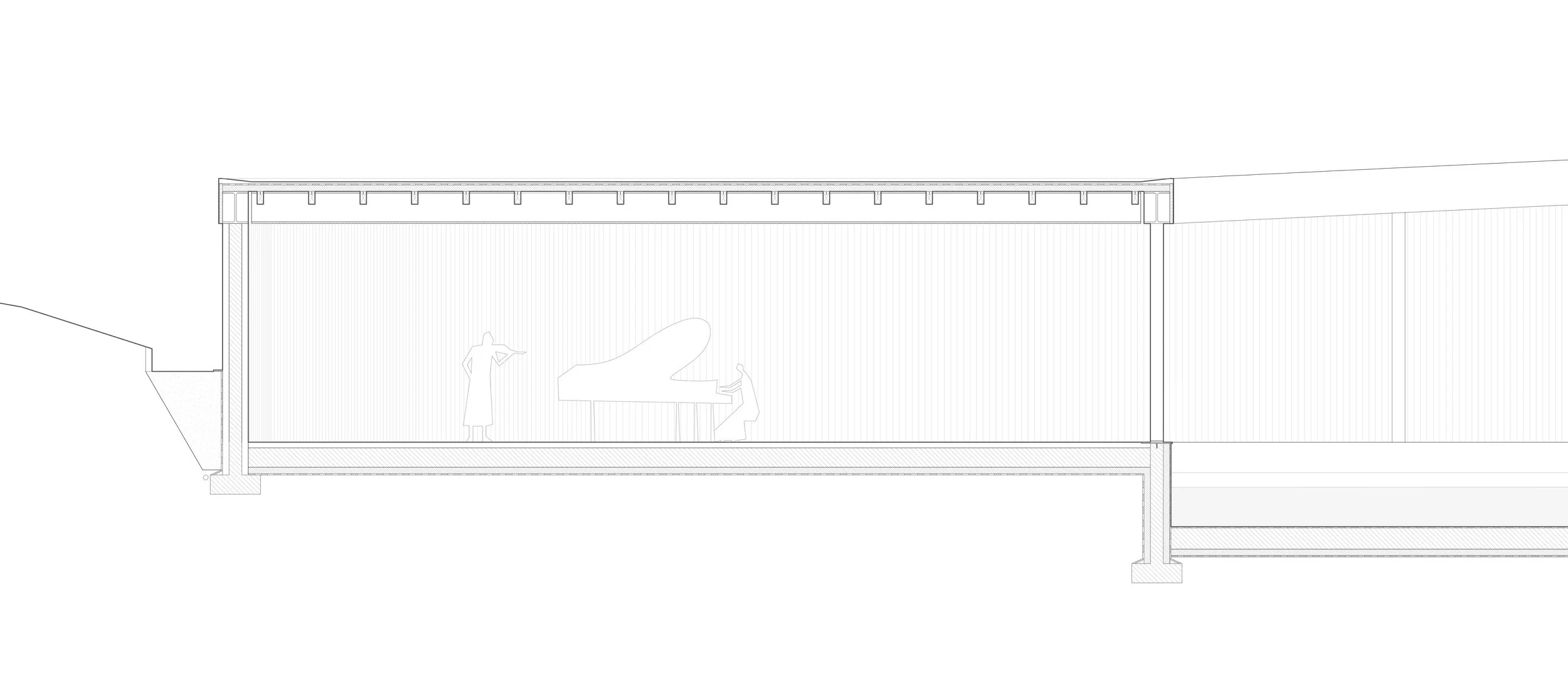 Marvila goes back to its prehistoric times. Over the years, it has developed in an undisciplined manner, always affirmed as a transi- tional territory between rural and urban. Here, of course, the need arises to generate a permeable, versatile and sociocultural piece, infrastructure with systems that manipulate the beauty of light and diffuse shadow along concrete surfaces; of being free or locked up; of being up or down. In a gesture, different spaces are enclosed and infinite activities can be performed. The passage of time and its consolidation with the space reconnects the entire cultural, educa- tional and community spectrum of the area. The constructive poetics between the slenderness of the steel pillars and the heaviness of the sloping concrete roof, emphasize the need to articulate and celebrate past experiences with a conscious vision of the future. The exterior walls that evoke the work of Richard Serra emphasize the idea of intimate space and at the same time the curves welcome you and encourage you to discover the interior space. A place of restlessness, of reconnection, of passage or of stay, of lights and shadows. An appreciable void, a vibrant space, a sensitive skin, a material honesty, a timeless space and an organic geometry. An almost autonomous space, almost ideal.