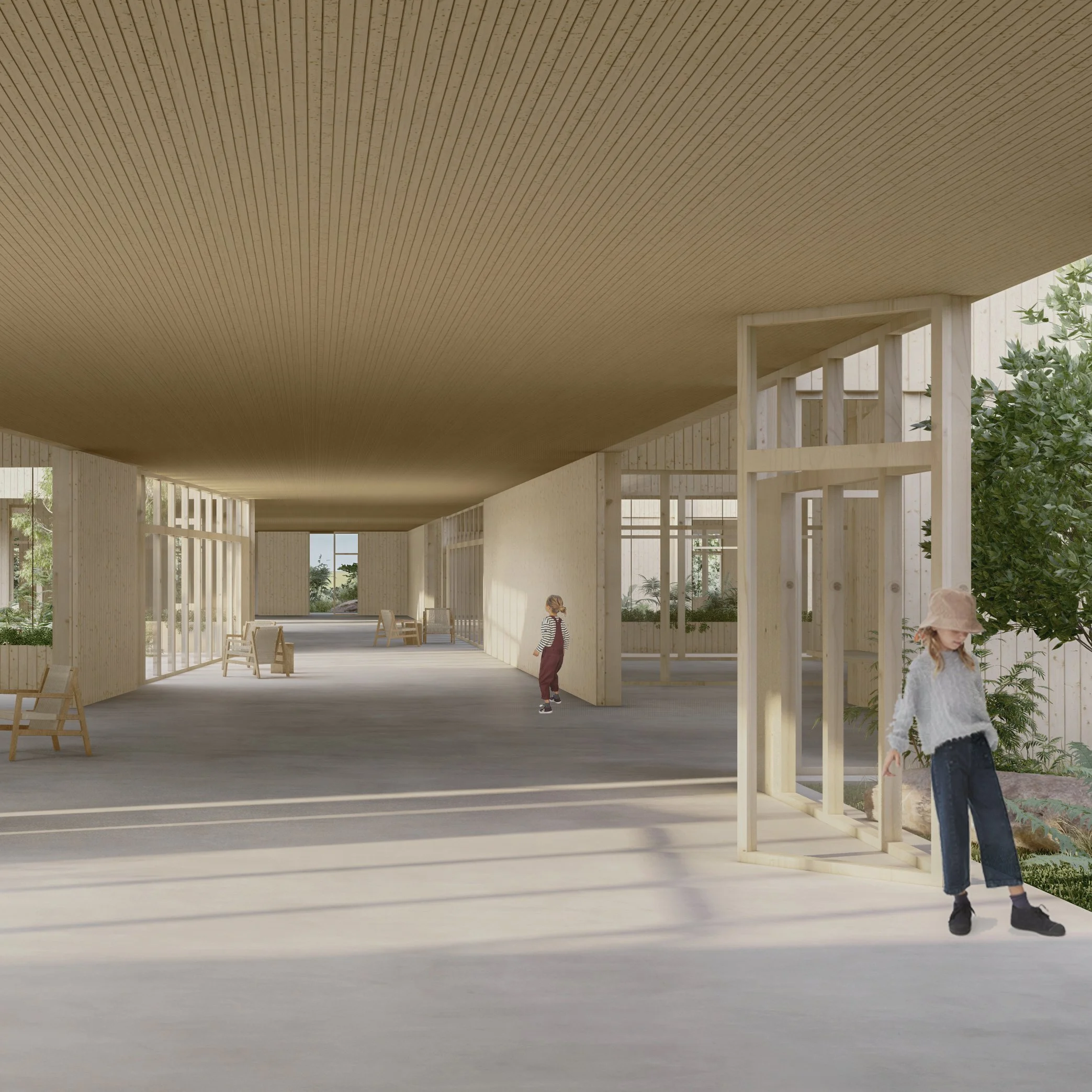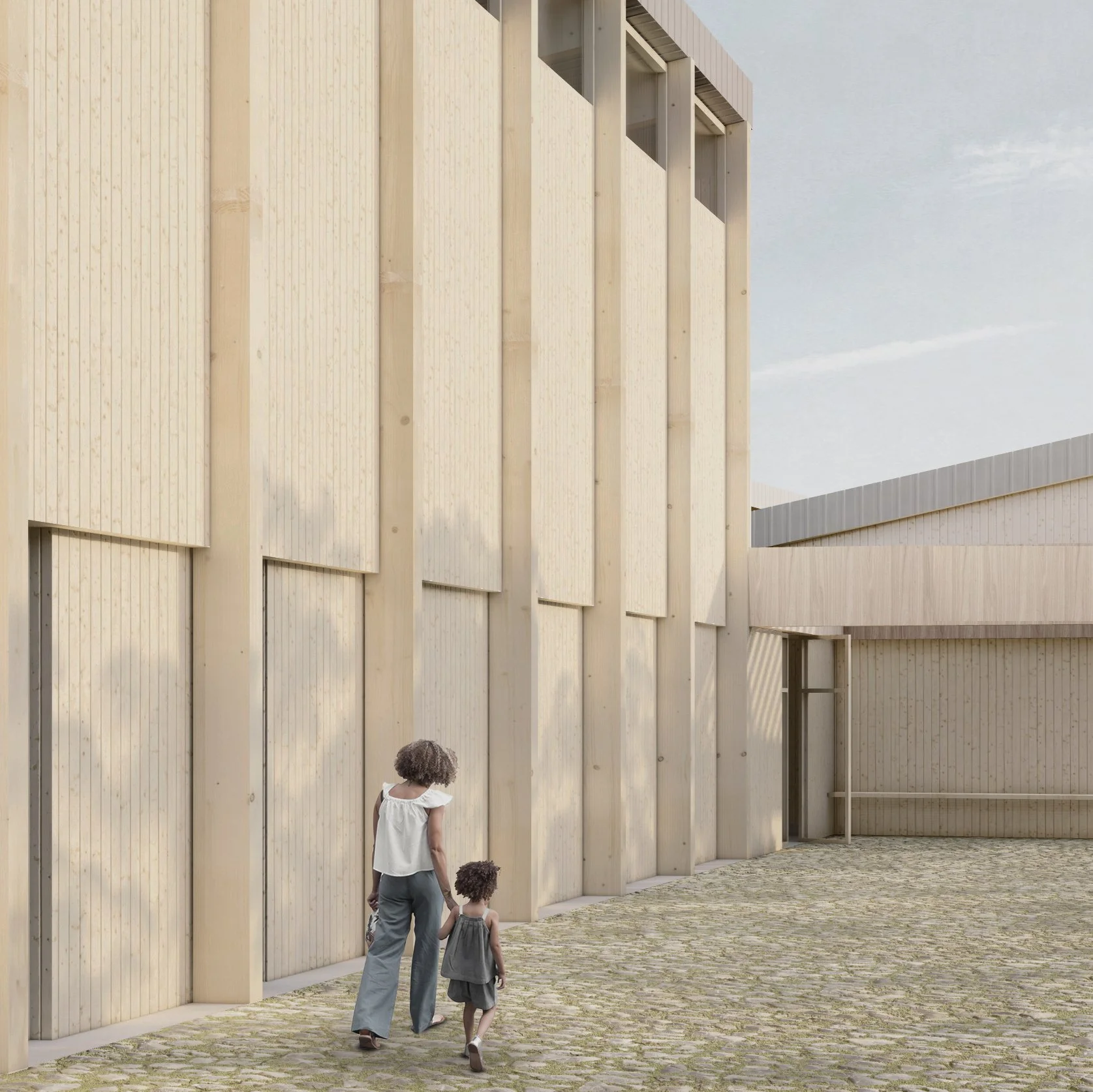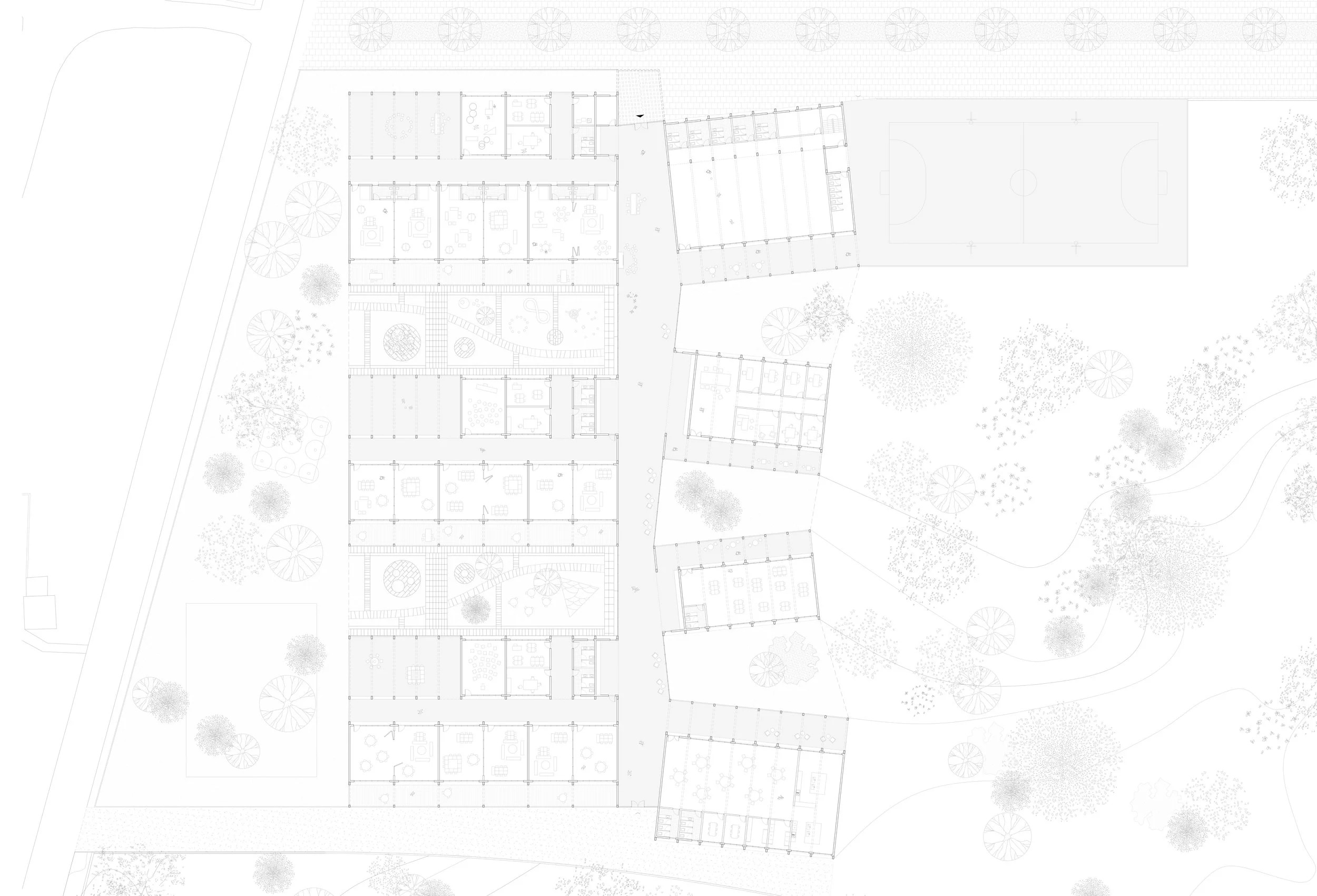 Trafaria is a parish in the municipality of Almada, which enjoys an exceptional location in relation to the metropolitan area of Lisbon and the mouth of the Tagus River. It is a small settlement situated on the transitional ridge between the Atlantic Ocean and the south bank of the river, opposite Lisbon. This human settlement dates back to the middle of the 16th century, when the Lazaretto was built here, a place for the quarantine of all those returning from maritime expeditions. The life of this community has always been linked to fishing, a source of subsistence that still feeds a large part of the population today. On the perimeter of the Trafaria industrial zone, two informal settlements of significant size have sprung up, known as Torrao 1 and 2, where a large number of families live without adequate infrastructure and in inadequate conditions. This place, marked by a precarious social and economic environment, is the subject of reflection on the basis of the construction of a new school centre capable of being the seed of change. The proposed programme allows for the development of fundamental architectural issues. The different identities and building typologies that converge on the site become the object of reflection for the creation of the whole. Starting from a new construction necessary for the fulfilment of the defined functional programme, strategies for the creation of a new place will be presented. An intervention programme is proposed that questions not only the buildings themselves and their uses, but also the adjacent public and social spaces. Thus creating, through architecture, new spaces that help to improve the lives of the inhabitants, the Escola do Amanha.