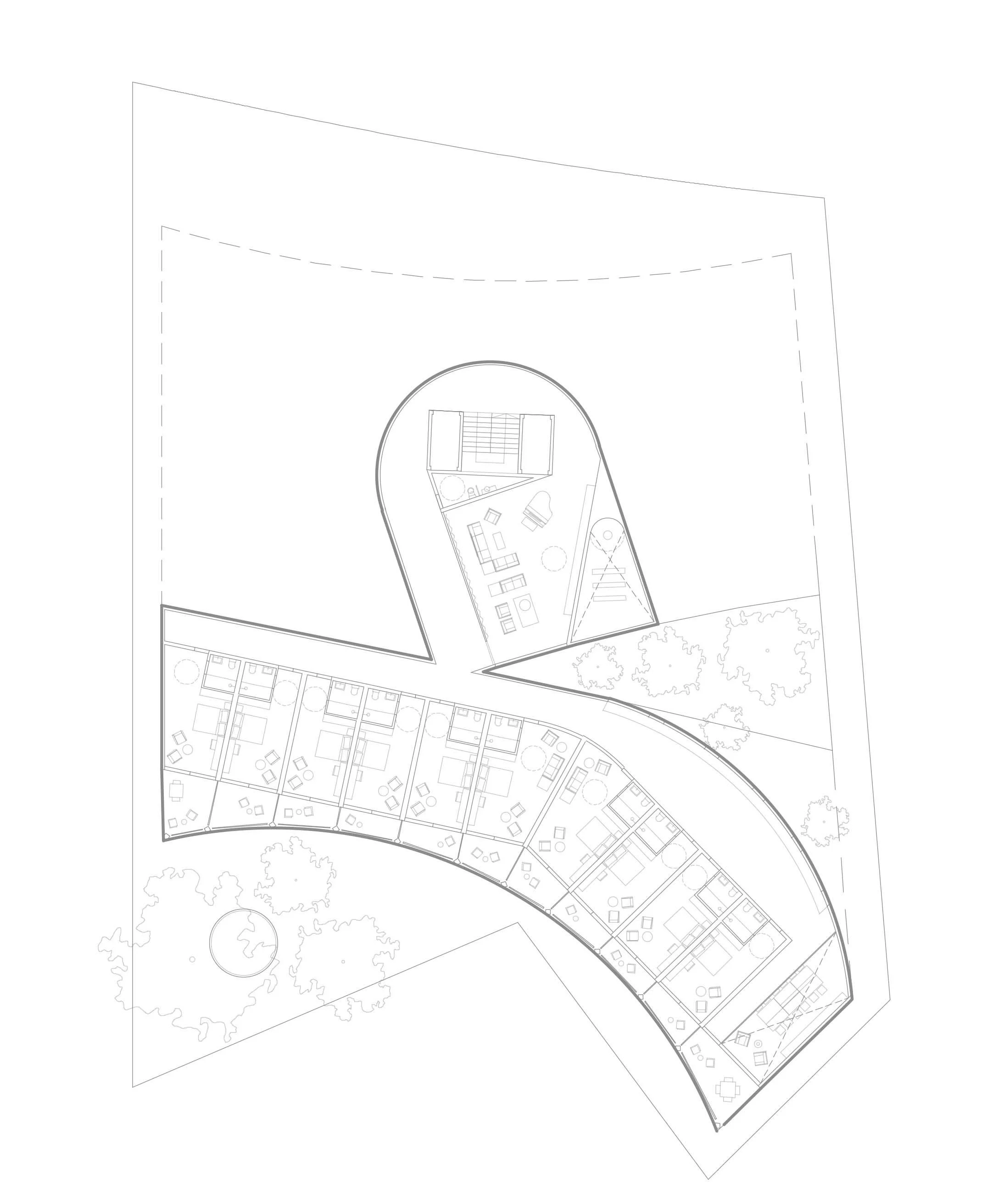Collective spaces play a fundamental role in senior housing, as they are directly linked to the idea of building community. These spaces help elderly residents feel comfortable and reduce the psychological sense of loneliness. The building acts as a protective shell that generates new social dynamics. More than a refuge, the architecture seeks to inspire optimism and vitality, especially for seniors who are often left behind by their families. At the same time, residents are provided with personal space, even while sharing a home with others.